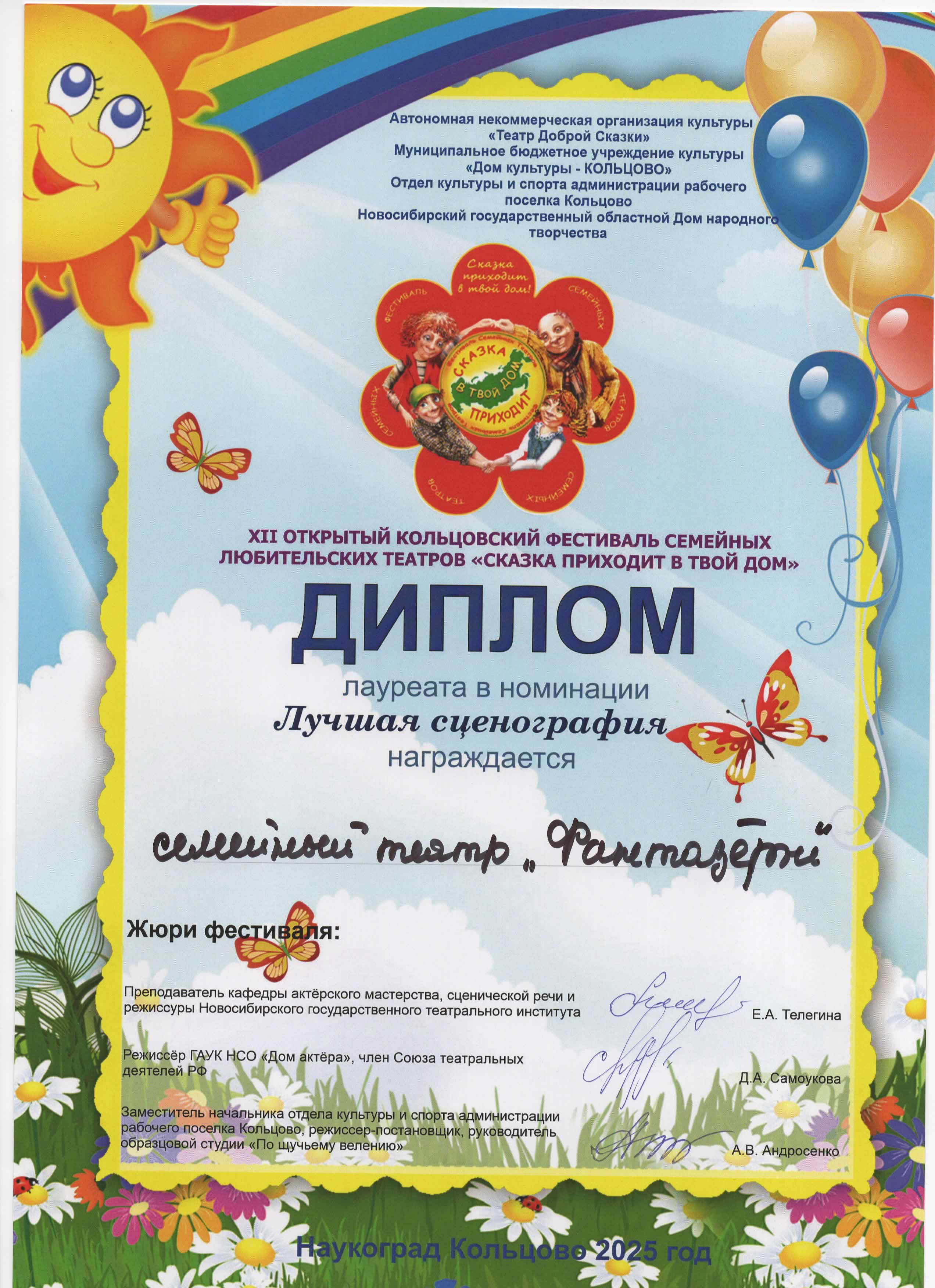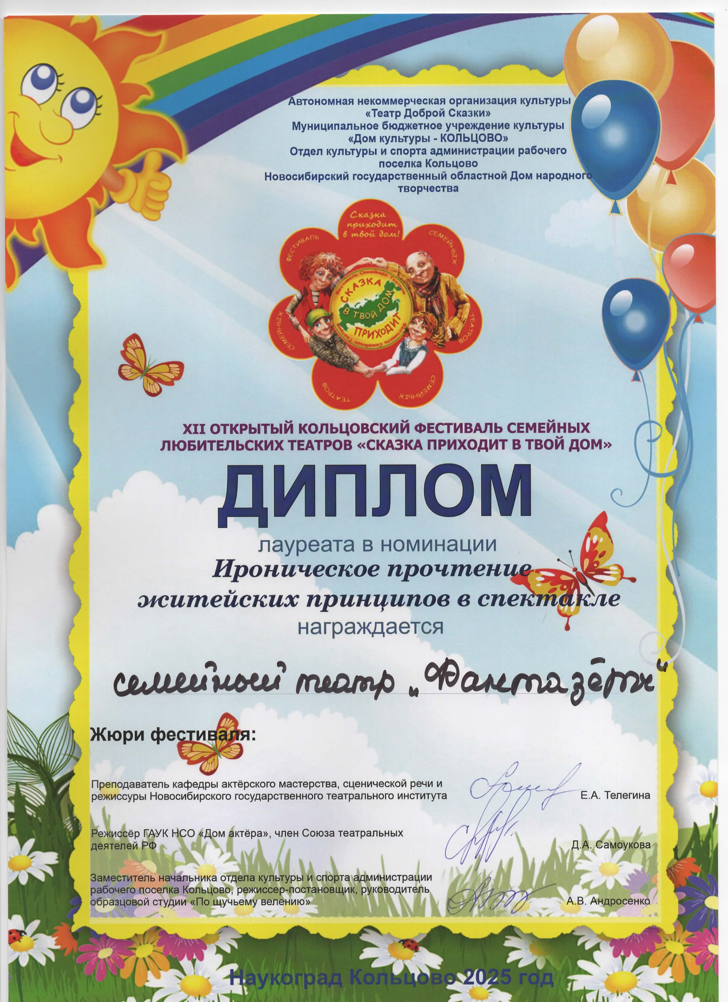 Диплом за участие в XII фестивале семейных любительских театров 2025 "Фантазеры"